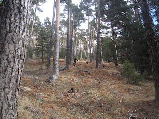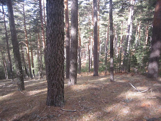 Las acículas caídas secas, las pequeñas piñas, todo ello helado sonaba de una manera especial, muy parecido al crujir de la nieve cuando no está tan dura como hoy.