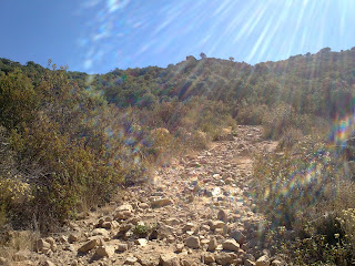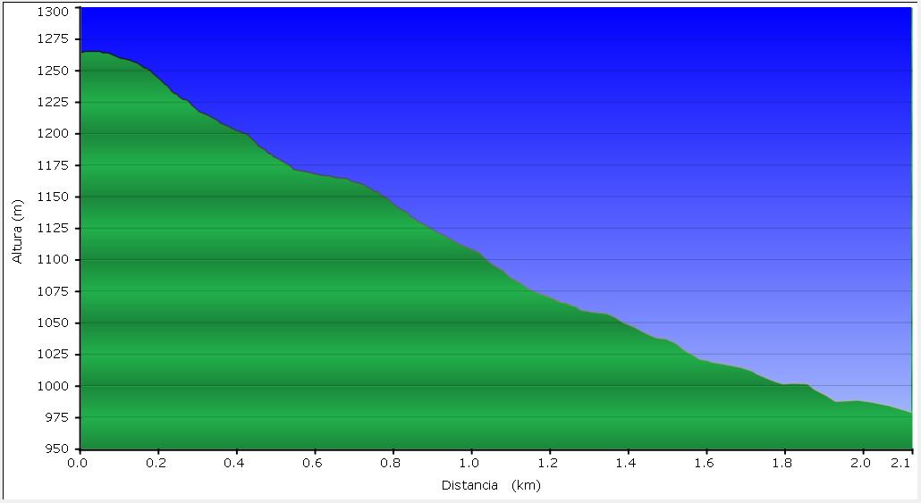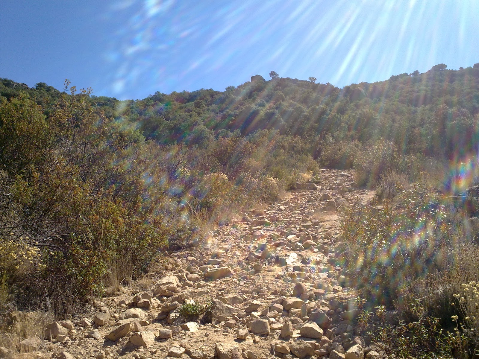 Las pendientes en general no son muy empinadas, sin embargo el terreno duro con piedras sueltas de diversos tamaños, así como la arenilla que lo recubre hacen que sea bastante resbaladizo.