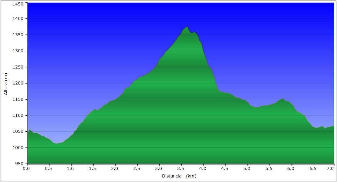 Esta ruta es circular por lo podemos optar por subor por una parte y bajar por la otra. En mi caso, y pensando en hacerla de la otra manera, subí por la parte «facil» y baje por la dificil. Como vereis en el perfil longitudinal la parte norte de la ruta tiene un desnivle mas brusco que la de la parte sur. La sur es la fácil. La norte para bajada puedo decir que es casi imposible, pues son escaleras y rocas, con grandes caidas y cortados. Después es mas llevadera, pero apenas presenta dificultades.