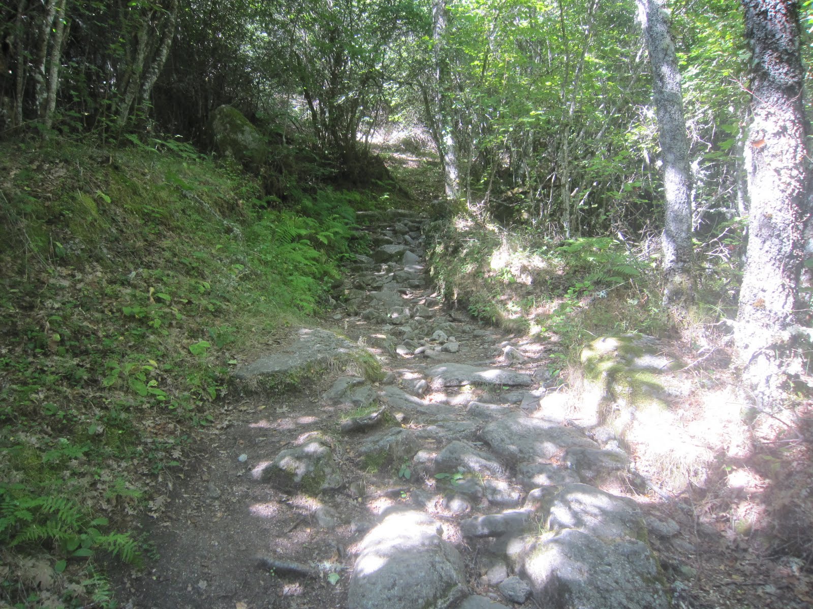 Nos desviamos por un camino que sale a la derecha y damos a un «camino empedrado» por donde en invierno baja el agua.