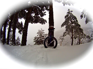La cantidad de gente era espeluznante, pero poco a poco fue desapareciendo según nos adentramos en el camino. La autopista Smith, pues después del arreglo realmente es una autopista por el monte, presentaba una nieve dura sobre la cual era bastante sencillo avanzar, los repechos a pie pues las piernas se queman un montón. Los fuera de pista fueron el gran aliciente que nos presentó este tramo, pues la nieve polvo la manera de resbalar sobre el monociclo fue muy divertido. Hay que aprovechar que las caídas son suaves.